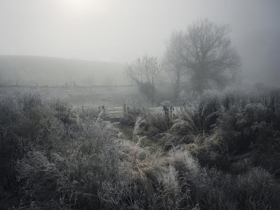 Ornamental grasses and seed heads catch the light, framing a path that leads down through the perennial garden and out towards the fields at Dan Pearsons garden at Hillside.